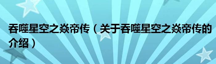 大家好,小安来为大家解答以上的问题。吞噬星空之焱帝传,关于吞噬星空之焱帝传的介绍很多人还不知道,现在让我们一起来看看吧!
