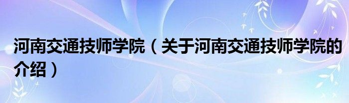 大家好,小安来为大家解答以上的问题。河南交通技师学院,关于河南交通技师学院的介绍很多人还不知道,现在让我们一起来看看吧!