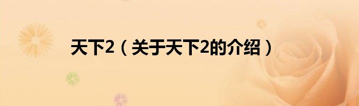 大家好,小安来为大家解答以上的问题。天下2,关于天下2的介绍很多人还不知道,现在让我们一起来看看吧!