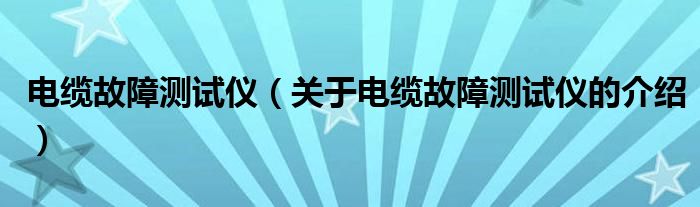 1、电缆故障检测仪(英文名称:Cable Fault Detector)是一套综合性的电缆故障探测仪器。