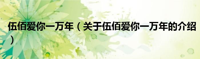 大家好,小安来为大家解答以上的问题。伍佰爱你一万年,关于伍佰爱你一万年的介绍很多人还不知道,现在让我们一起来看看吧!