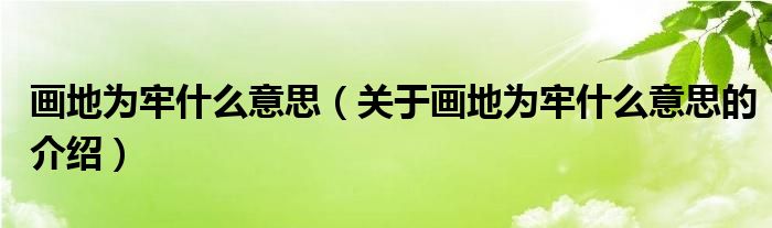 大家好,小安来为大家解答以上的问题。画地为牢什么意思,关于画地为牢什么意思的介绍很多人还不知道,现在让我们一起来看看吧!