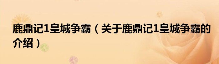 大家好,小安来为大家解答以上的问题。鹿鼎记1皇城争霸,关于鹿鼎记1皇城争霸的介绍很多人还不知道,现在让我们一起来看看吧!