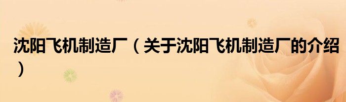 大家好,小安来为大家解答以上的问题。沈阳飞机制造厂,关于沈阳飞机制造厂的介绍很多人还不知道,现在让我们一起来看看吧!