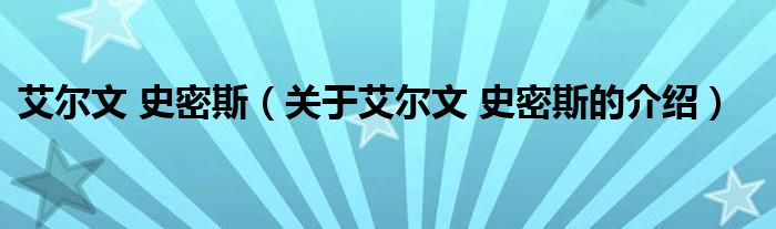 大家好,小安来为大家解答以上的问题。艾尔文 史密斯,关于艾尔文 史密斯的介绍很多人还不知道,现在让我们一起来看看吧!