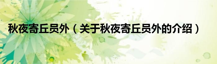 大家好,小安来为大家解答以上的问题。秋夜寄丘员外,关于秋夜寄丘员外的介绍很多人还不知道,现在让我们一起来看看吧!