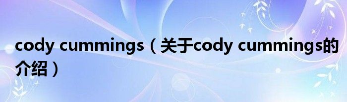 大家好,小安来为大家解答以上的问题。cody cummings,关于cody cummings的介绍很多人还不知道,现在让我们一起来看看吧!