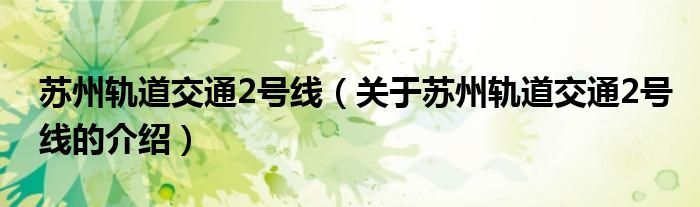大家好,小安来为大家解答以上的问题。苏州轨道交通2号线,关于苏州轨道交通2号线的介绍很多人还不知道,现在让我们一起来看看吧!