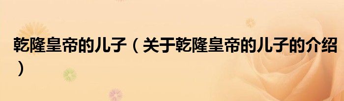 大家好,小安来为大家解答以上的问题。乾隆皇帝的儿子,关于乾隆皇帝的儿子的介绍很多人还不知道,现在让我们一起来看看吧!