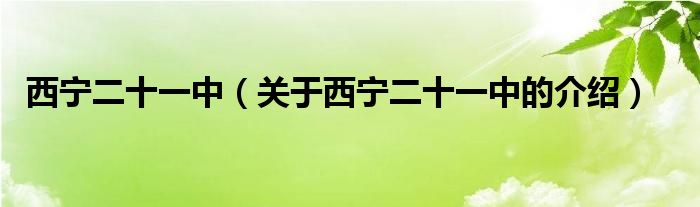 大家好,小安来为大家解答以上的问题。西宁二十一中,关于西宁二十一中的介绍很多人还不知道,现在让我们一起来看看吧!