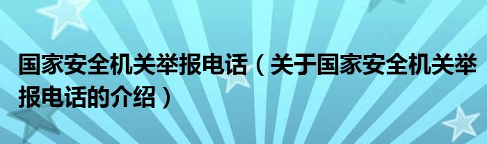 大家好,小安来为大家解答以上的问题。国家安全机关举报电话,关于国家安全机关举报电话的介绍很多人还不知道,现在让我们一起来看看吧!