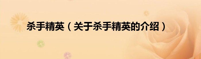 大家好,小安来为大家解答以上的问题。杀手精英,关于杀手精英的介绍很多人还不知道,现在让我们一起来看看吧!