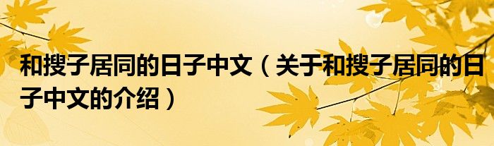 大家好,小安来为大家解答以上的问题。和搜子居同的日子中文,关于和搜子居同的日子中文的介绍很多人还不知道,现在让我们一起来看看吧!