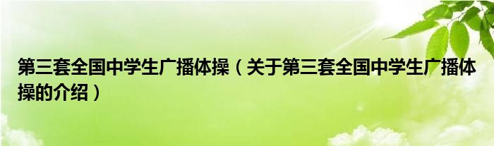 大家好,小安来为大家解答以上的问题。第三套全国中学生广播体操,关于第三套全国中学生广播体操的介绍很多人还不知道,现在让我们一起来看看吧!
