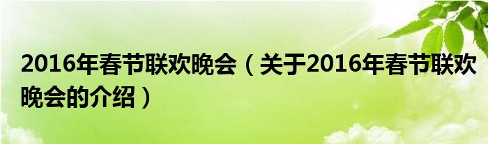 大家好,小安来为大家解答以上的问题。2016年春节联欢晚会,关于2016年春节联欢晚会的介绍很多人还不知道,现在让我们一起来看看吧!