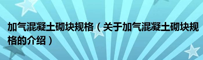 大家好,小安来为大家解答以上的问题。加气混凝土砌块规格,关于加气混凝土砌块规格的介绍很多人还不知道,现在让我们一起来看看吧!