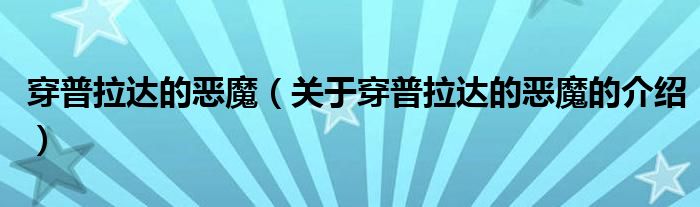 大家好,小安来为大家解答以上的问题。穿普拉达的恶魔,关于穿普拉达的恶魔的介绍很多人还不知道,现在让我们一起来看看吧!