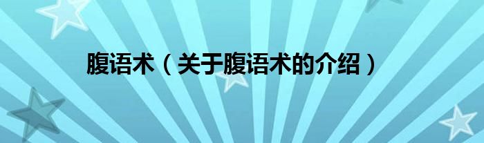 大家好,小安来为大家解答以上的问题。腹语术,关于腹语术的介绍很多人还不知道,现在让我们一起来看看吧!