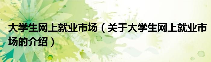 大家好,小安来为大家解答以上的问题。大学生网上就业市场,关于大学生网上就业市场的介绍很多人还不知道,现在让我们一起来看看吧!