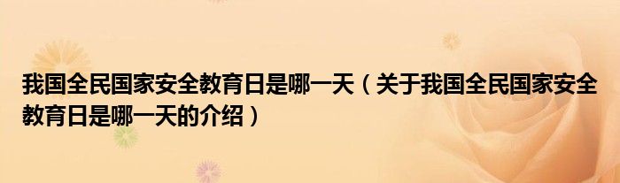 大家好,小安来为大家解答以上的问题。我国全民国家安全教育日是哪一天,关于我国全民国家安全教育日是哪一天的介绍很多人还不知道,现在让我们一起来看看吧!
