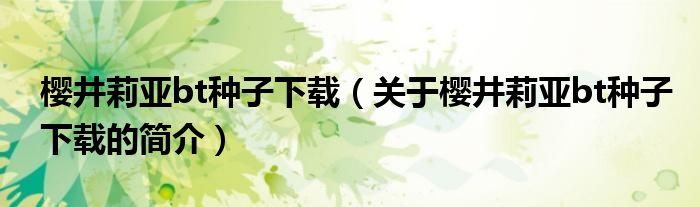 本文关于樱井莉亚bt种子下载的简介就讲解完毕,希望对大家有所帮助。