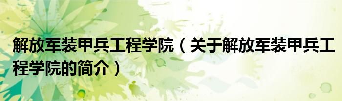 大家好,解放军装甲兵工程学院,关于解放军装甲兵工程学院的简介很多人还不知道,现在让我们一起来看看吧!