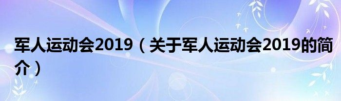本文关于军人运动会2019的简介就讲解完毕,希望对大家有所帮助。