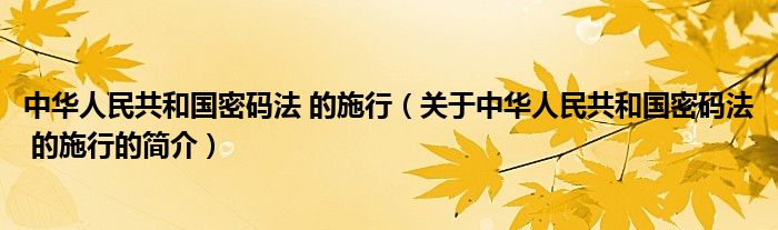 本文关于中华人民共和国密码法 的施行的简介就讲解完毕,希望对大家有所帮助。