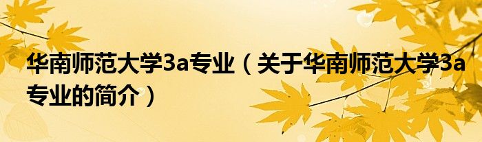 本文关于华南师范大学3a专业的简介就讲解完毕,希望对大家有所帮助。