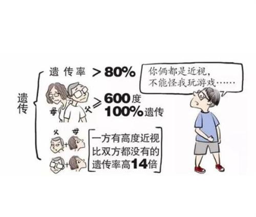 先天性近视一般都和遗传因素有关,如果孩子的父母,一人或者是双方患有高度近视,那孩子出生以后,就很有可能会遗传近视眼,后天环境因素引起的近视眼,要比先天因素的几率低很多,往往都是因为青少年有不良的阅读习惯,或长时间近距离看书看电视,而导致近视的发生。