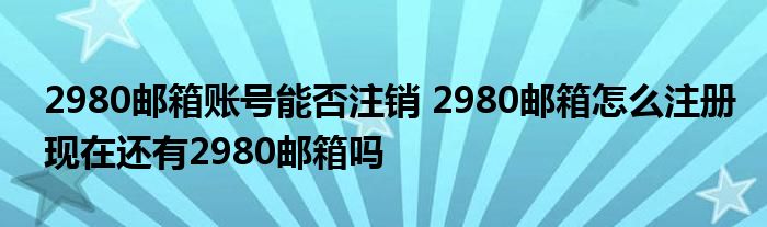 大家好,关关来为大家解答以上问题。2980邮箱账号能否注销,2980邮箱怎么注册现在还有2980邮箱吗这个很多人还不知道,现在让我们一起来看看吧!