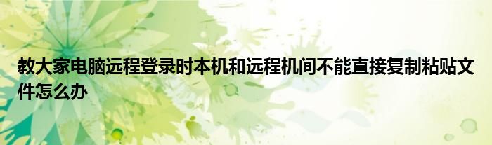 近日有关于电脑远程登录时本机和远程机间不能直接复制粘贴文件怎么办的问题受到了很多网友们的关注,大多数网友都想要知道电脑远程登录时本机和远程机间不能直接复制粘贴文件怎么办的具体情况,那么关于到电脑远程登录时本机和远程机间不能直接复制粘贴文件怎么办的相关信息,小编也是在网上进行了一系列的信息,那么接下来就由小编来给大家分享下小编所收集到与电脑远程登录时本机和远程机间不能直接复制粘贴文件怎么办相关的信息吧(以下内容来自于网络非小编所写,如有侵权请与站长联系删除)