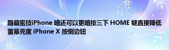 图、文/苹果仁时常有需要调整萤幕亮度的需求吗?或是觉得内建的萤幕亮度,即便调到最暗也还是很亮吗?只要用这招密技设定一下,就可以让暗度更按、想要快速切换萤幕亮度也很容易!(旧款 iPhone 按 HOME 键,iPhone X 按侧边钮)
