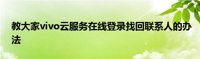 最近发现很多网友们对于vivo云服务在线登录找回联系人vivo云服务在线登录找回联系人问题都非常关注,而我们现在的生活基本上也都离不开手机,想要了解最新的信息也都是直接在手机上进行了解,那么既然现在大家都想要了解vivo云服务在线登录找回联系人vivo云服务在线登录找回联系人问题,小编今天也是特地到网上去搜集了一些与vivo云服务在线登录找回联系人vivo云服务在线登录找回联系人相关的信息,那么在这里小编就来给大家一起分享出来吧,让大家能够了解到更多自己想要了解到的信息。