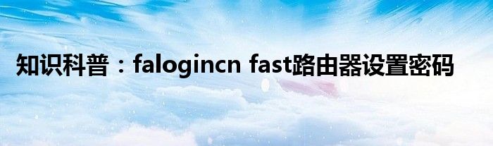 如今随着人们生活品质越来越高,大家对于生活方面的追求也是越来越多了,那么既然对于生活方面的知识需求了解,那么小编今天就来给大家针对falogincn fast路由器设置密码这方面的知识来进行一个介绍吧。
