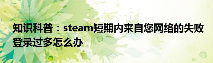 如今随着人们生活品质越来越高,大家对于生活方面的追求也是越来越多了,那么既然对于生活方面的知识需求了解,那么小编今天就来给大家针对steam短期内来自您网络的失败登录过多怎么办这方面的知识来进行一个介绍吧。