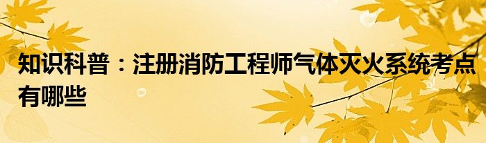 如今随着人们生活品质越来越高,大家对于生活方面的追求也是越来越多了,那么既然对于生活方面的知识需求了解,那么小编今天就来给大家针对注册消防工程师气体灭火系统考点有哪些这方面的知识来进行一个介绍吧。