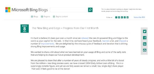 2月8号的时候,微软集团召开了一场闭门发布会。在发布会中,微软集团推出了一款全新的,由人工智能所驱动的必应搜索引擎以及Edge 浏览器。微软所推出的Bing 搜索引擎结合了ChatGPT 的功能可以自由提问,但是并不是每一个用户都能够使用,不管是推出的PC版或者是移动端想要去体验最新的Bing ,用户都需要提前申请,而之前微软集团也表示计划将最新推出的Bing 和Edge 逐渐的向用户对外开放,在未来的时间使用这两像搜索引擎的用户使用规模将会扩大的数百万人。