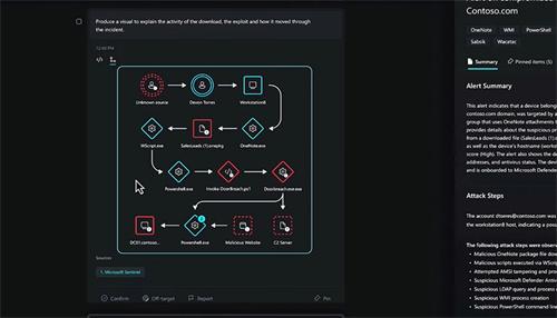 AI聊天机器人Microsoft Security Copilot,按照用户输入的提示会制作出相对应的PPT和此类事件当中可能出现的一些漏洞,或者是bug,在寻找问题之后,帮助安全分析师找到更有效的解决问题方式。网络安全员使用AI聊天机器人可以了解安全事故的事件,也能提出总结报告。此类AI机器人只提供安全数据提示,并不是训练模型。