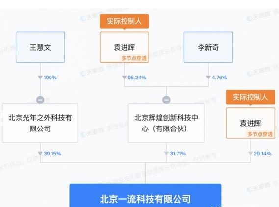 根据一流科技的股权结构,除了王慧文的光年之外,第二大股东为北京辉煌创新科技中心,持股比例为31.71%,第三大股东为袁进辉,持股29.14%。袁进辉是一流科技的创始人兼CEO,曾是微软亚洲研究院研究员和360搜索的早期成员。由于北京辉煌创新科技中心的执行事务合伙人也是袁进辉,因此,一流科技目前的实际控制人仍然是袁进辉。此前有消息称,王慧文的光年之外与一流科技已经达成了并购意向,交易以换股形式进行。