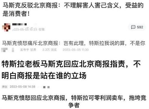 前段时间对于汽车资讯较为关注的朋友们,会看到一条内容出现,马斯克反驳北京商报。同一个自媒体博主针对这个主题,甚至会有众多文章推出,事情最开始的原因是,4月21日北京商报刊发出了一则对特斯拉进行抨击的文章《特斯拉降价伤人伤己》,文章当中主要针对是马斯克在毛利军和利润双赢的情况下,也要继续降价,对销量追求的这种做法作出表态,隐含着对马斯克这种做法批评的意思。过了几天,北京商报也刊发了一则更为一已明确的评论,表示不要对低端价格战成为其中的簇拥者,让汽车行业更为健康的发展。