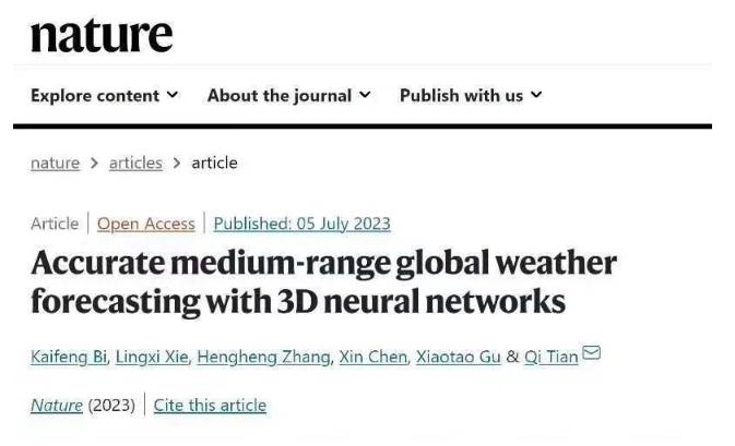 在科技的快速发展中,人工智能(AI)正逐渐渗透到各个领域,为人类带来了前所未有的机遇和挑战。最近,《自然》杂志正式刊登了华为云盘古大模型研发团队的重大突破——《三维神经网络用于精准中期全球天气预报》("Accurate medium-range global weather forecasting with 3D neural networks")。这一成果引起了广泛的关注,也为气象领域带来了全新的希望。