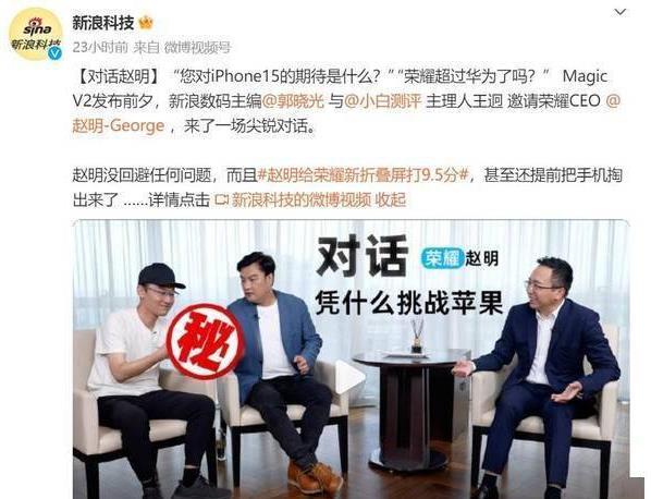赵明相信荣耀Magic V2将在高端市场摆脱苹果一家独大的局面。一方面,高端市场的直板机创新已经达到了瓶颈,而折叠屏市场则呈逆势增长。更重要的是,荣耀找到了折叠屏的窍门,实现了更完美的一体化设计。因此,荣耀Magic V2有望成为iPhone 15的最强对手,也可能成为果粉们的第一款折叠屏手机。