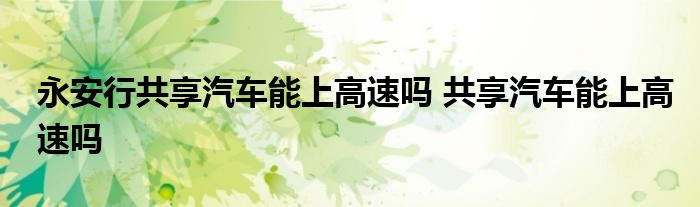 大家好,小态解答以上问题。永安行共享汽车能上高速吗,共享汽车能上高速吗这个很多人还不知道,现在让我们一起来看看吧!