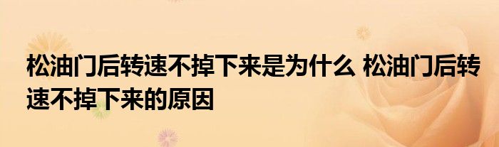 大家好,小美来为大家解答以上问题。松油门后转速不掉下来是为什么,松油门后转速不掉下来的原因很多人还不知道,现在让我们一起来看看吧!