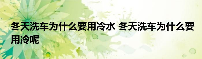 大家好,小美来为大家解答以上问题。冬天洗车为什么要用冷水,冬天洗车为什么要用冷呢很多人还不知道,现在让我们一起来看看吧!