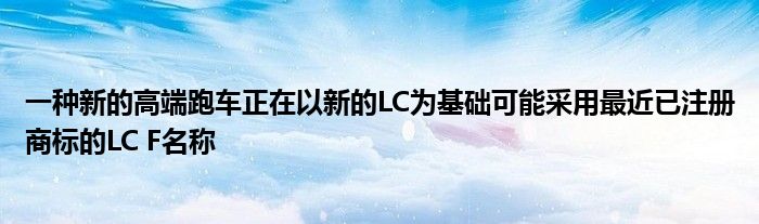 雷克萨斯车迷的喜讯。据说一种新的高端跑车正在以新的LC为基础,可能采用最近已注册商标的LC F名称。根据最近的《汽车和驾驶员》报告,雷克萨斯确实在计划LC F,不仅如此,它还计划在今年第三季度推出它。具体来说,在十月的东京车展上。