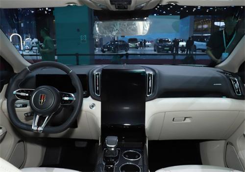 内饰方面,红旗HS3采用家族化设计风格,配备了三幅式多功能方向盘、悬浮式全液晶仪表盘、垂直布局的悬浮式中控屏和电子档把。空调出风口垂直布局,并加入镀铬条进行装饰,凸显出高级感。