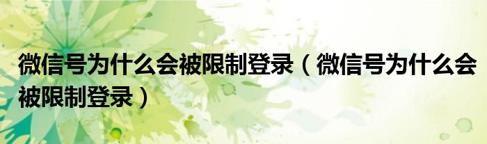 大家好,综合小编来为大家讲解下。微信号为什么会被限制登录,微信号为什么会被限制登录很多人还不知道,现在让我们一起来看看吧!