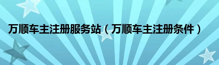 大家好,综合小编来为大家讲解下。万顺车主注册服务站,万顺车主注册条件很多人还不知道,现在让我们一起来看看吧!